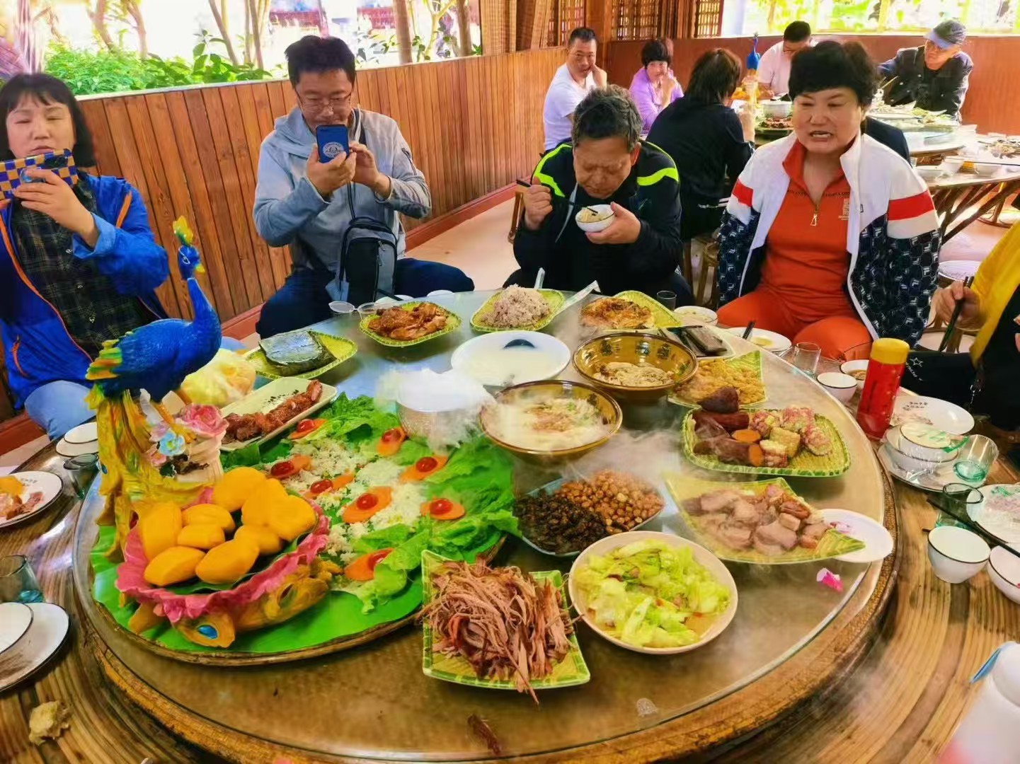 【用餐】旅游团队餐(5早4正)全程正餐不低于40元/人/餐,特别安排:雨林象餐+簸箕宴+孔雀宴;正餐十人一桌,不含途中餐