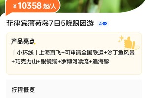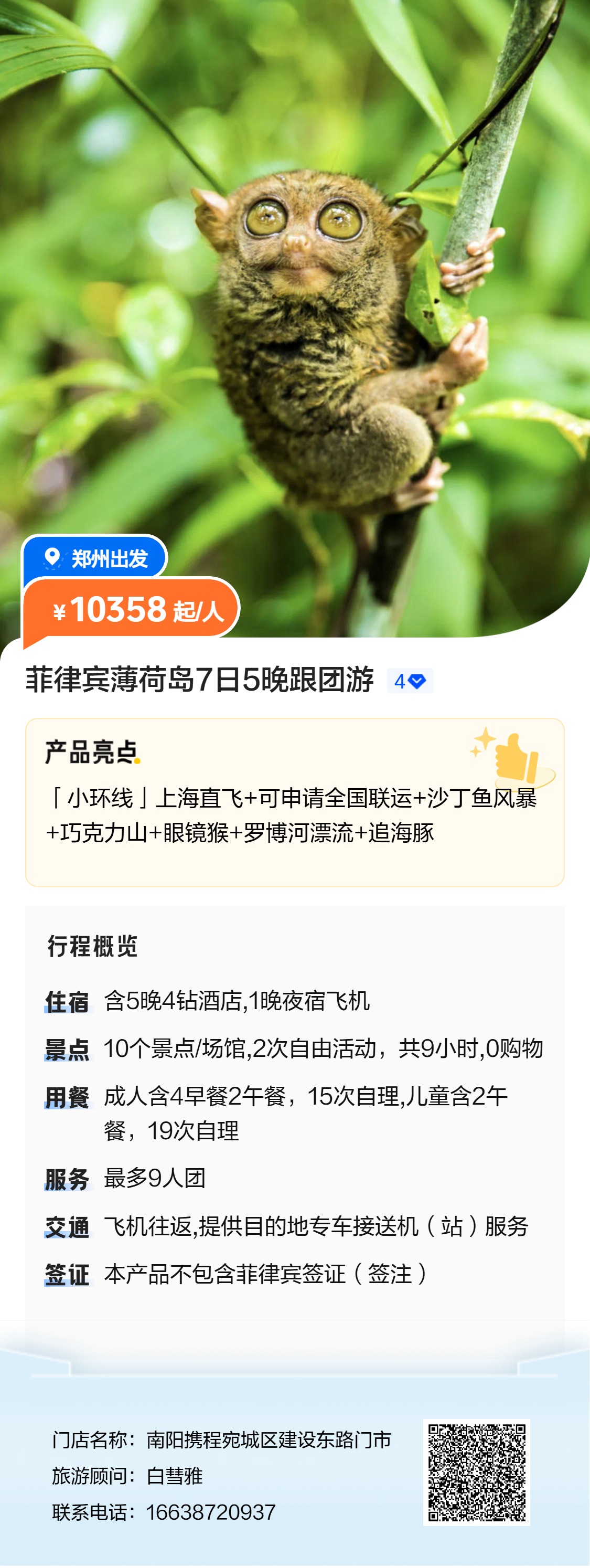 沙丁鱼风暴+巧克力山+眼镜猴+罗博河漂流