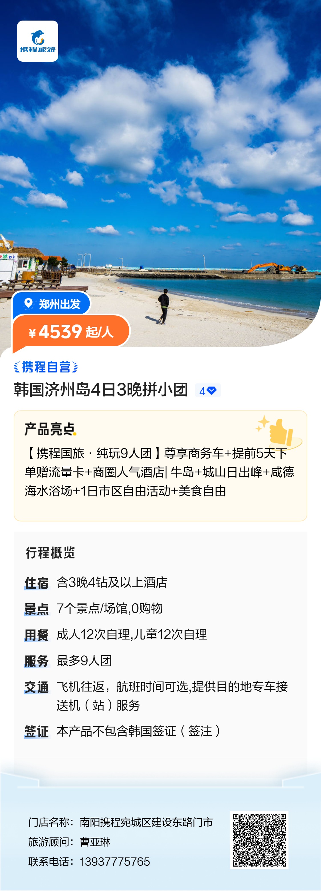 郑州出发韩国济州岛
