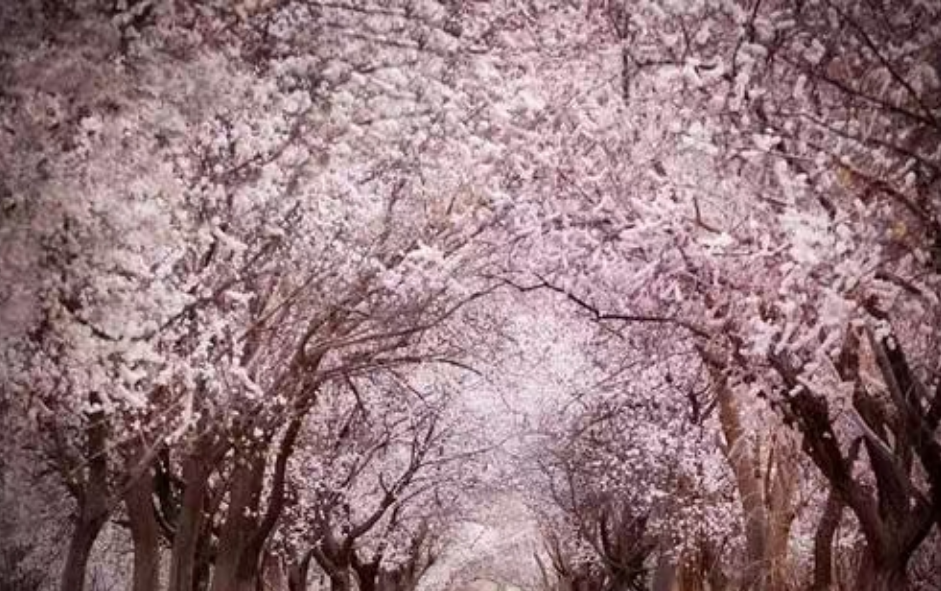百米长的路被遮天蔽日的【塔尔乡】杏花笼罩,形成一条粉色走廊,唤起少女心;初春乍暖还寒时,还能遇到杏花雪花共存的奇观,如梦似幻。
