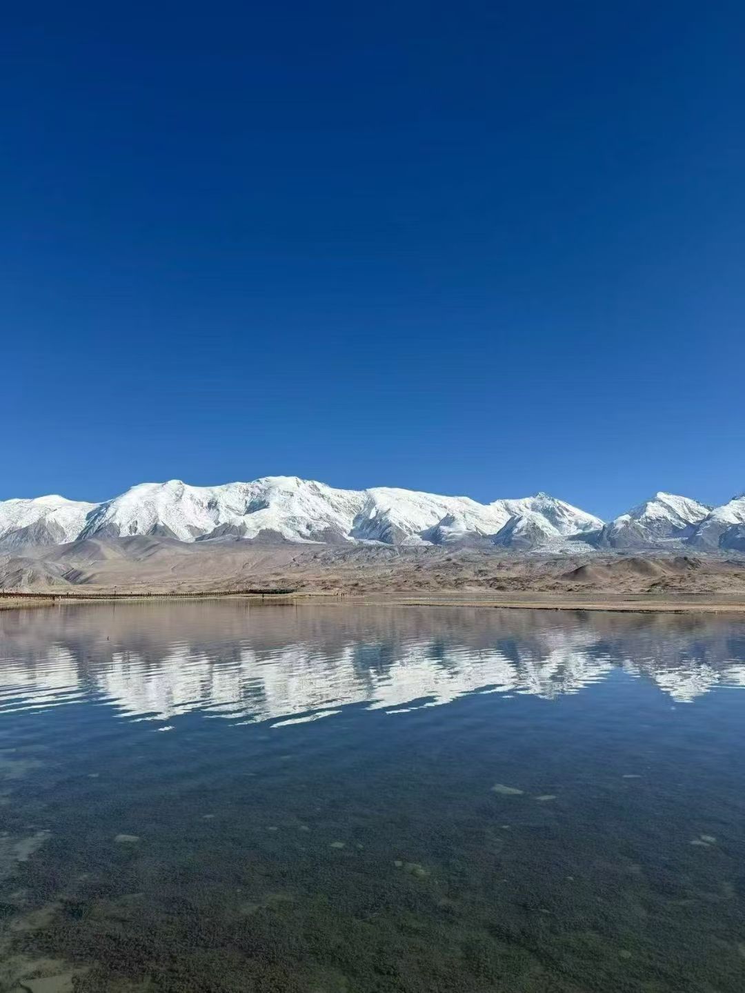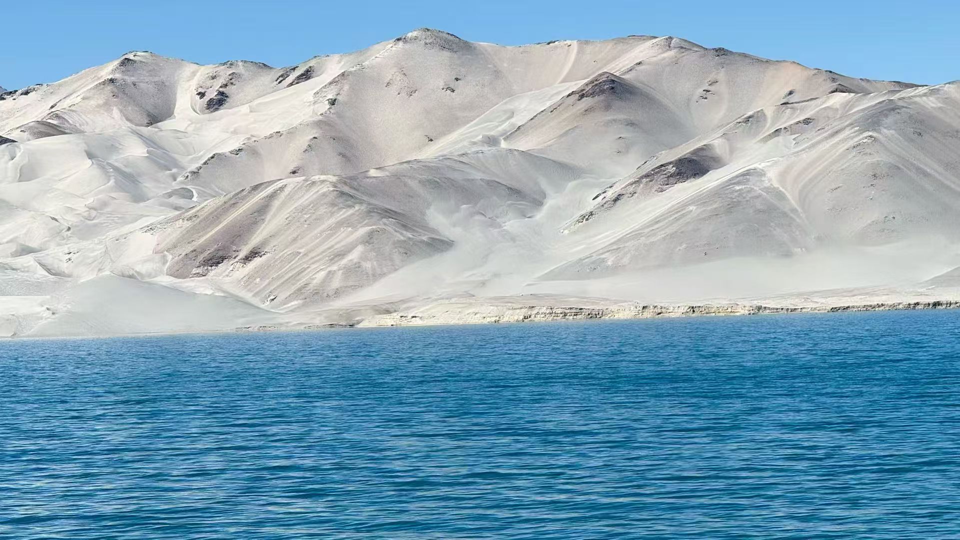 帕米尔高原上它被称为“白沙湖”,像一颗蓝色的宝石,镶嵌在高原上,远看湛蓝,近看翠绿如马代的湖泊,后面是一座座白沙山,延绵起伏,线条优美,白沙在高原阳光照射下发出金属般的光泽,碧波倒映雪山,在磅礴大气的帕米尔高原上白沙湖就像一位温柔的少女,被两侧的公格尔九别峰守护着。