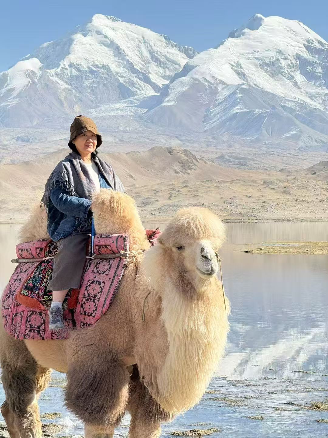 喀拉库勒湖是典型的高原湖泊,平均海拔3560米左右,湖东面矗立着“冰川之父”慕士塔格峰,西面雄踞逶迤不绝的萨尔阔勒山脉。喀拉库勒湖仿佛一颗高原的明珠,镶嵌在蓝天白云冰川雪山之间,随着风的变化,时而平静如水,时而波澜起伏。阳光照射下,慕士塔格峰倒映在喀拉库勒湖里,治愈系风景此刻更加具像化了。