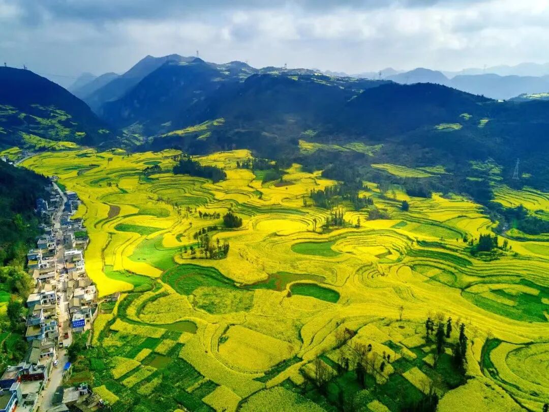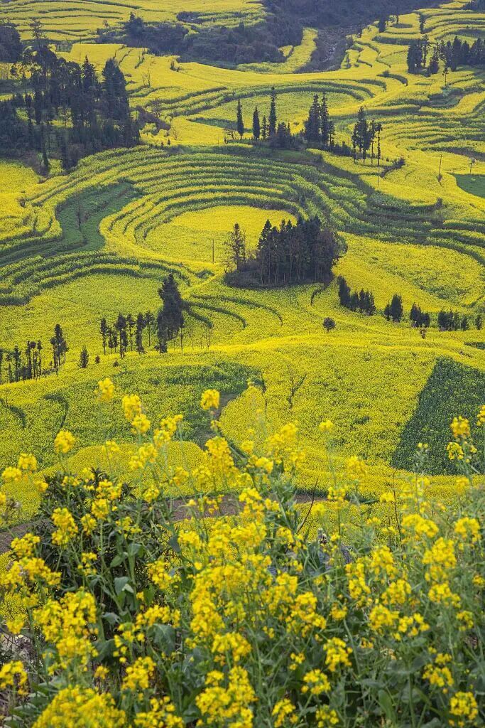 罗平,它有着最美的春天,棵棵粉红桃花,洁白的梨花点缀在漫山遍野金黄色的油菜花中,余邵诗云 油菜花开满地黄,丛间蝶舞蜜蜂忙,清风吹拂金波涌,飘逸醉人浓郁香。花粉中含有丰富的花蜜,常引来彩蝶与蜜蜂飞舞于花间,由此平添了乡间田园缤纷的景致。