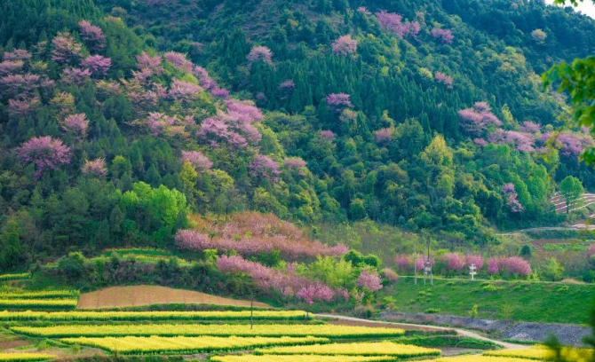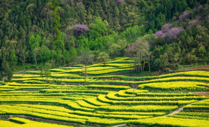 在汉中,有一片金色的海洋,那便是油菜花的天下。每当春风拂过,这些花朵便竞相绽放,仿佛是大自然最精致的画作,将汉中的田野装点得如诗如画。