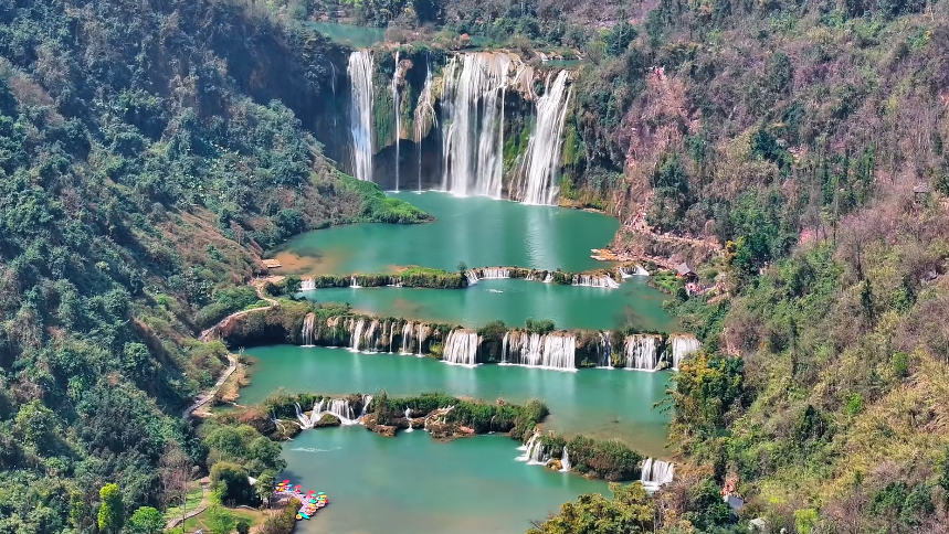 十级相连的叠水奇观,气势磅礴