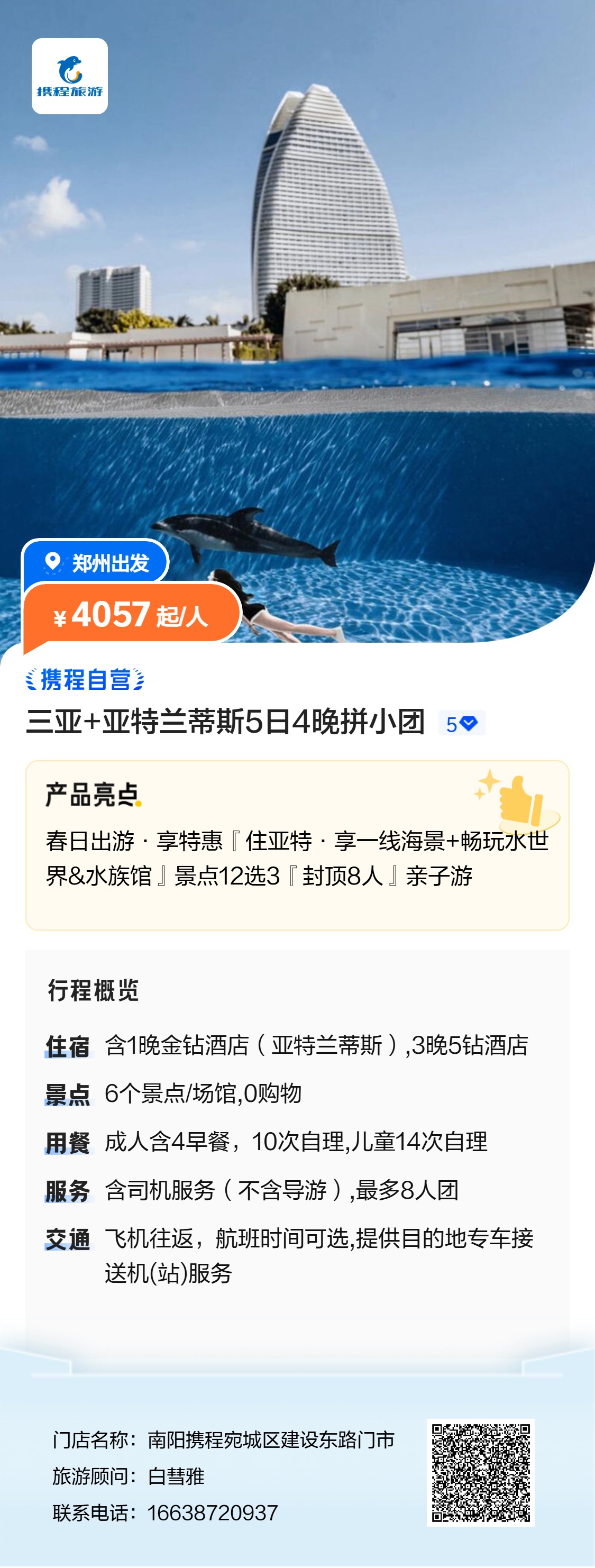 返程从三亚到行程描述到达地机票(已含机建、燃油税)本产品不包含游客出发城市至产品出发地(郑州)往返大交通,请游客自行前往产品出发地
